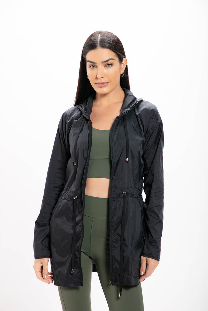 Os detalhes em zíper, bolsos funcionais, capuz e acabamentos na mesma cor do tecido conferem elegância ao seu look. Leve, confortável e prática, é ideal para o uso diário.